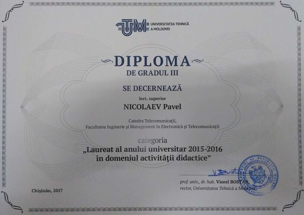 Diplome și distincții obținute în rezultatul activitații didactice și de cercetare